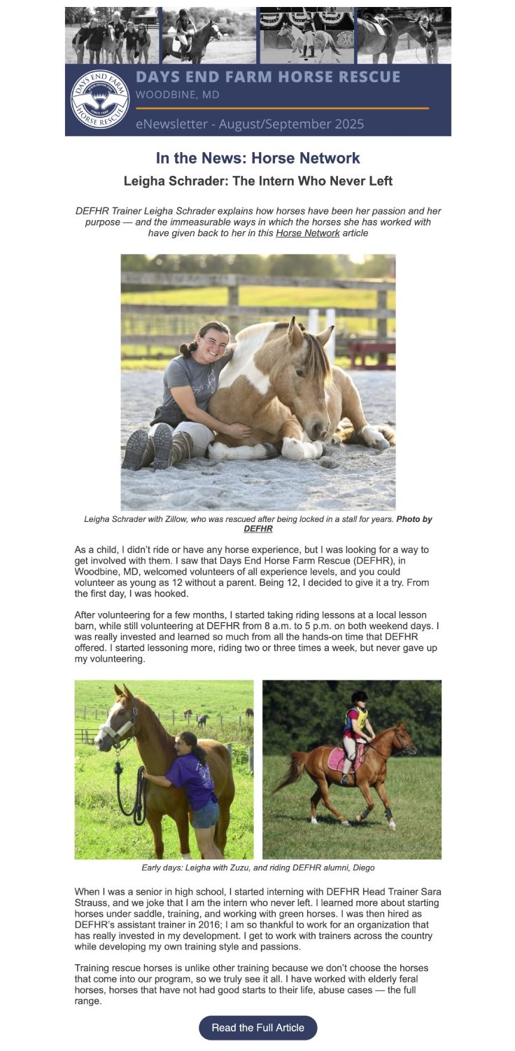 Graphic Design > E-Blasts and E-Newsletters > Days End Farm Horse Rescue
